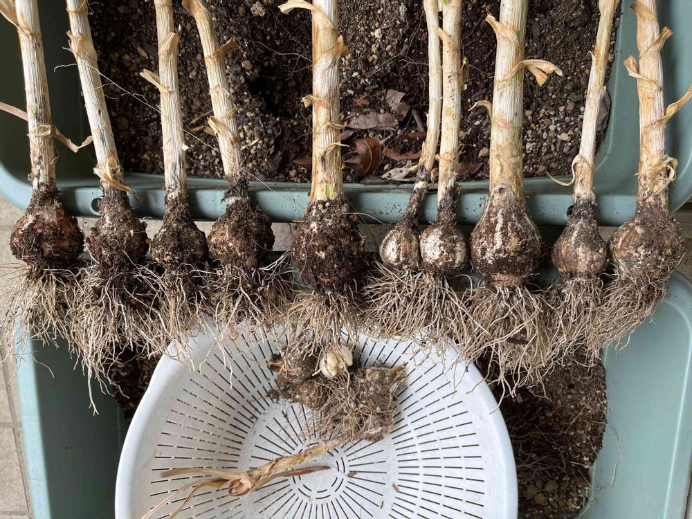 もう少し茎の太いものは丸々と大きいのを想像していましたが、そうでもなく…😓小さいにんにく🧄がたくさん採れました。