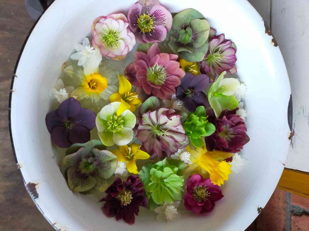 相棒が満開になっているクリスマスローズの花がら摘みのついでにフローティングフラワーを拵えました