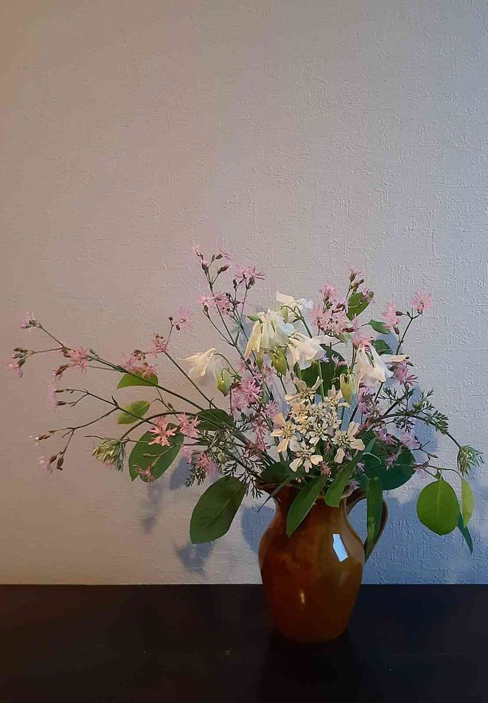 ポキポキ手折って、ガサっと入れただけ。メインのお花がないのでキマらないけど、野の花のふわふわ感、束の間楽しみます♪