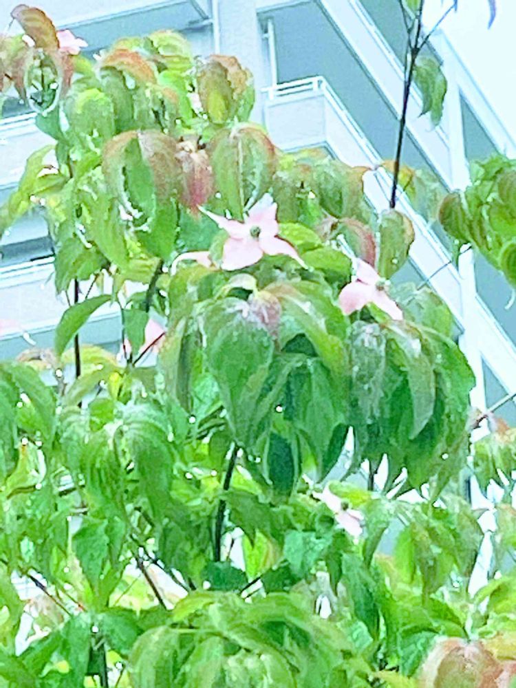 お出かけ先,ピンクのヤマボウシ,出勤途中での投稿画像