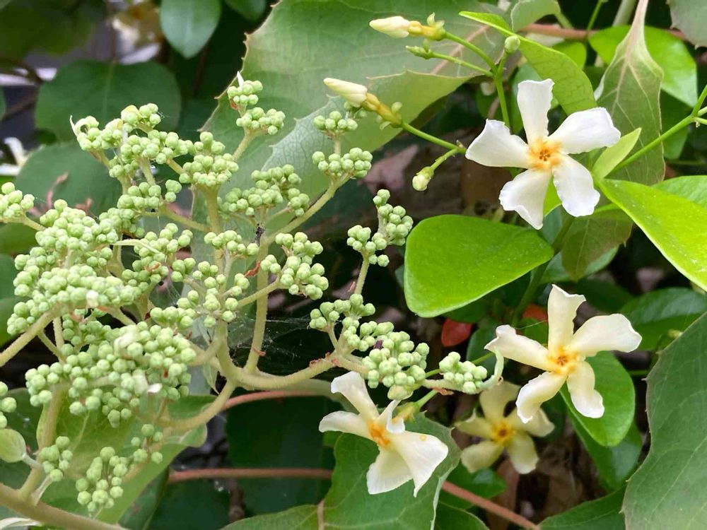 香りが漂っているテイカカズラと出番を待つイワガラミ🎶🎶