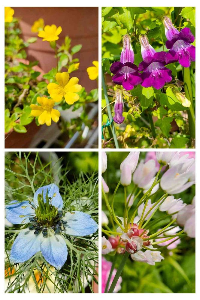 黄色、ピンク、青、白と賑やかに咲いてますね〜🌸⸜(サ* ॑꒳ ॑*ク)⸝🌸