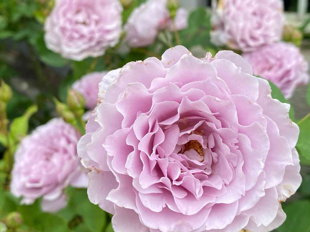 細かめの波状弁の紫〜ピンクのバラ。。お顔も綺麗で、たくさん咲かせて見事です。。😍💖