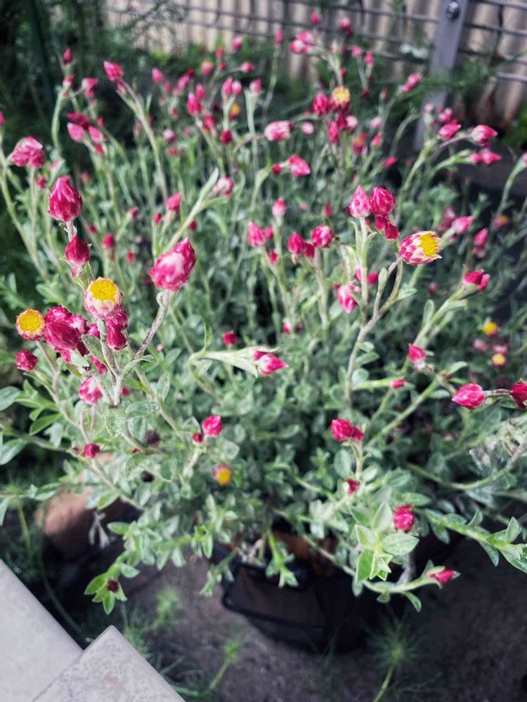 蕾は濃いピンクで、開くと黄色と白花びらが目立ち、葉っぱはシルバーリーフぽくて可愛らしくて素朴な雰囲気😆