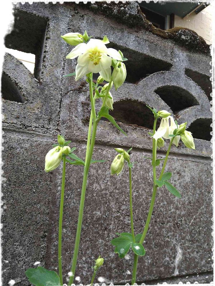 塀の隙間から🌱我が家のオダマキは白い子ばかりです(•ө•)♡