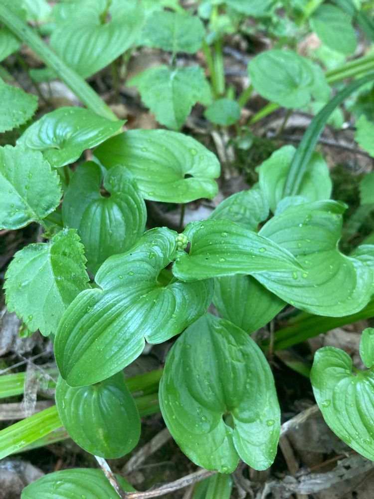 舞鶴草の群生地もかわいい葉が出揃い、小さな小さな花芽をつけています。