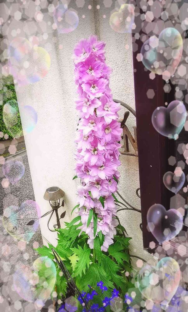デルフィニウムさん、大きくて遠くから見ても目立って、主役級ですよね💖紫とか青は、見た事あるのですが、ピンク✨可愛いですね😍💕