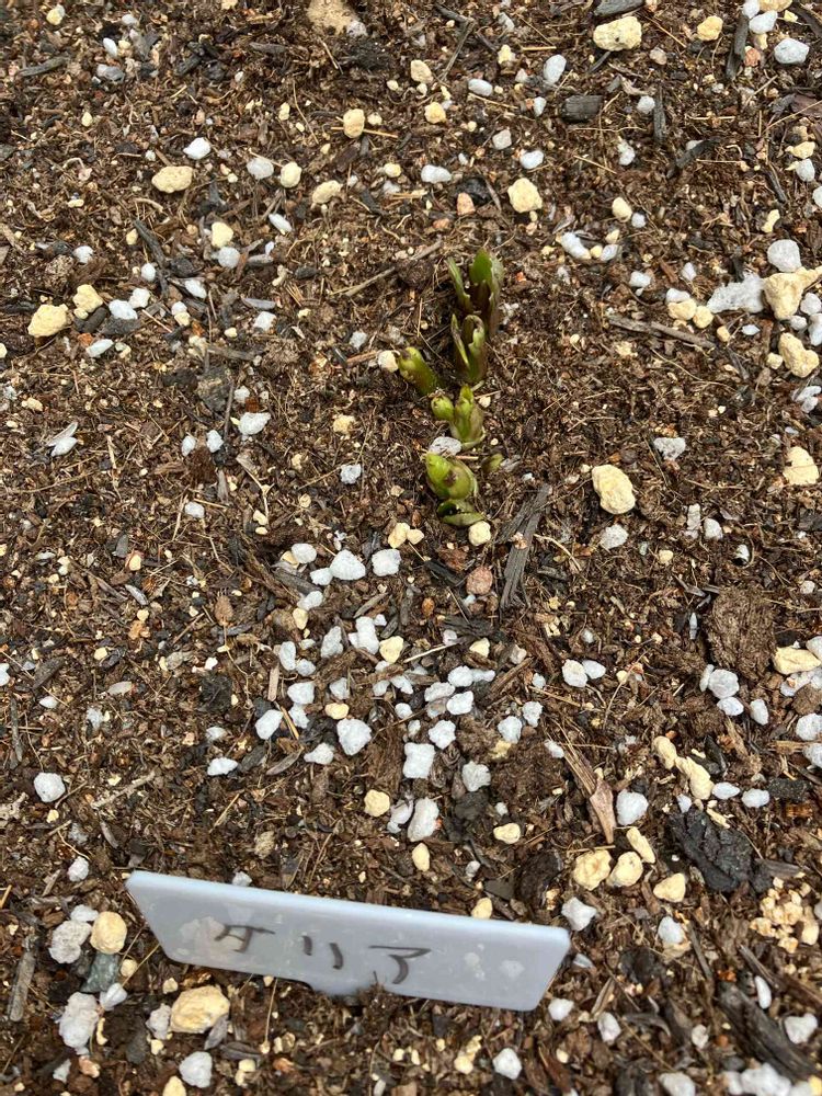 去年ダメもとで1000円で買ったダリア。球根を掘り上げて去年植えたのが、芽が出た🌱