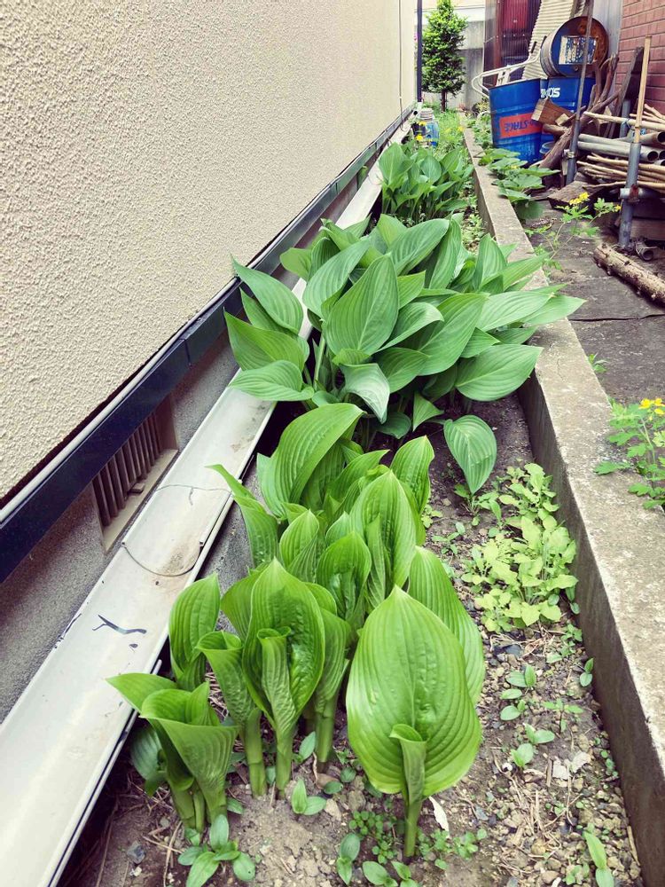 今年もウルイが豊作です。野菜が高いので大活躍。いつ日が当たっているのか分からないような隣家との隙間に、いつもありがとう。