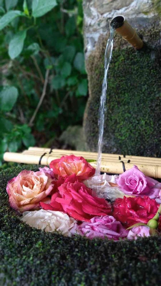 耳納北麓にある巨峰ワイナリーの薔薇の花手水🌹🌹