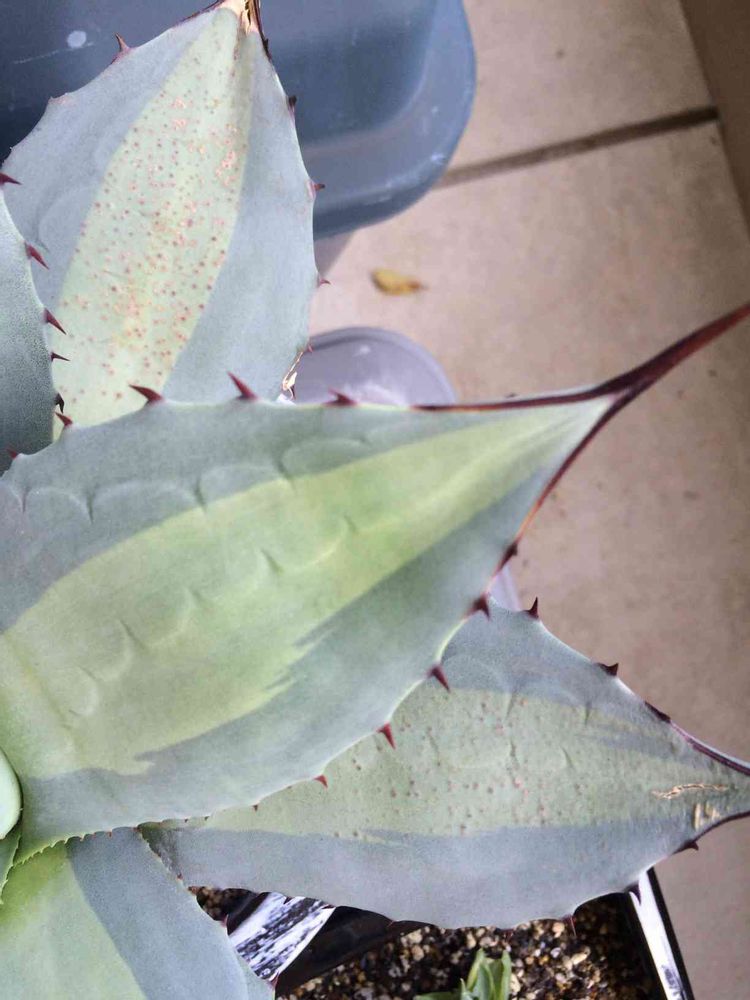 アガベはよくサビ病にかかるようなんですが黄緑色のとこだけにあるのが不思議で。 やはり中からのぶつぶつで、 1つ潰してみたほうが良いですかね?