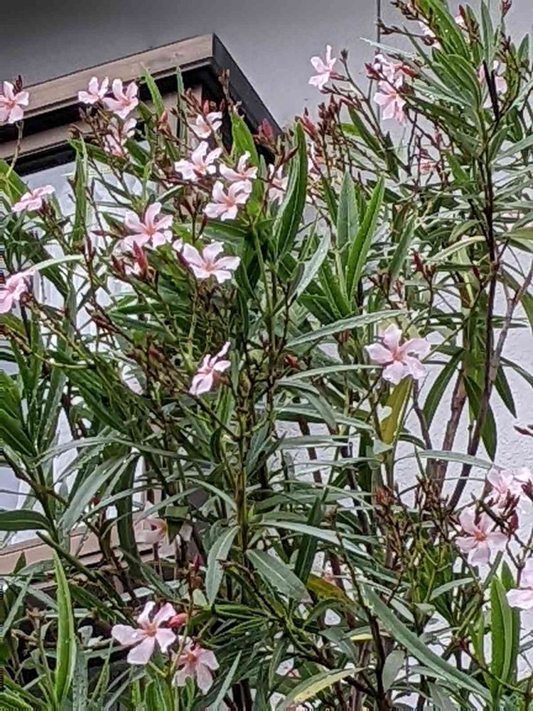 な、な、なんと夾竹桃が、もう咲いていました‼️この近くで椿の蕾を見たというのに‼️