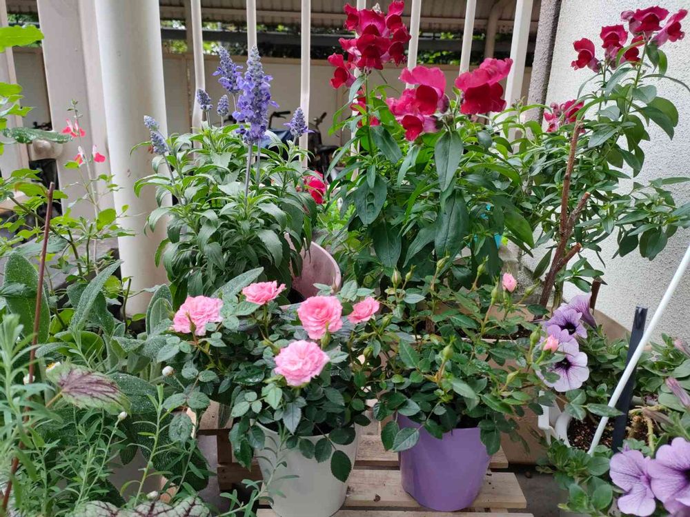 ピンクのミニバラ🌹に、美人サフィニア✨にブルーサルビア✨