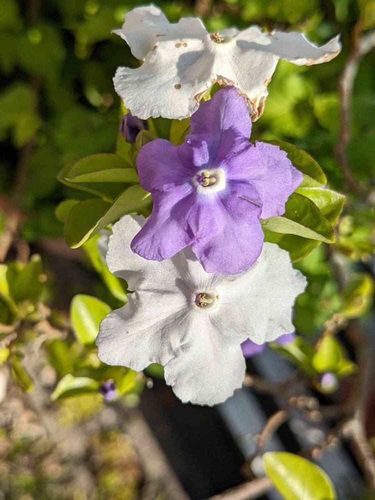 次々と咲き紫から白❗に変わる満開の可愛い〜鉢植えの💜💜ニオイバンマツリ🤍🤍