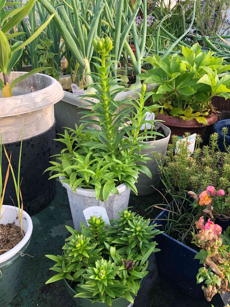 植え替え忘れたスカシユリ、ピンク色は花芽が少ない😅白いのは草丈が短い😂花がおわったら、鉢替えします。