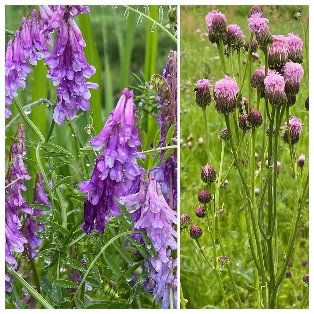 ナヨクサフジ、キツネノアザミ、小雨の中