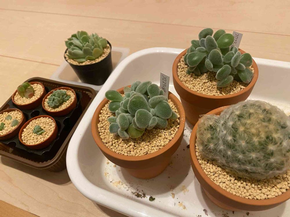 やっと自分時間ができたので玄関で植え替え♪先日ポチった子達も届いたのでまとめて頑張りました‼︎