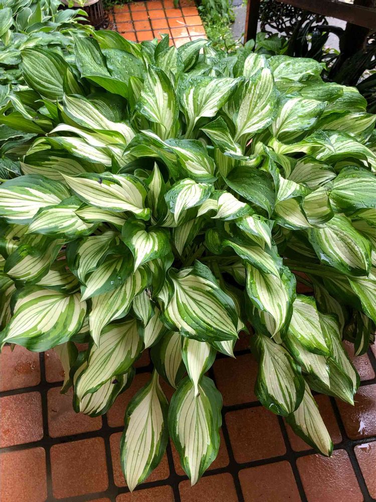 大きな鉢に植え替えたらこんなにモリモリになりました。ギボーシ。