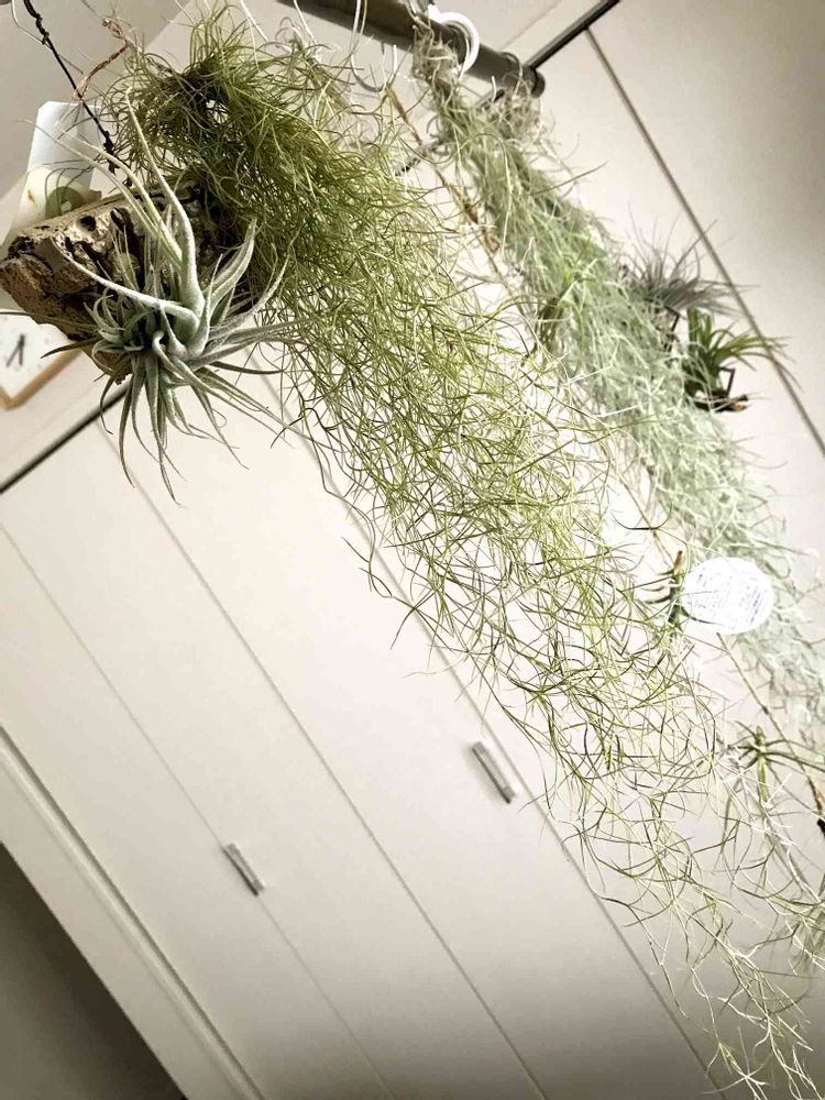 細葉のウスネオイデス 。下の名前はファインだそうです。先日の強風で細葉を紛失し、さらに細いものを入手。水、風、光のあるバルコニーですが、s字フックは使わない方がよさそう。