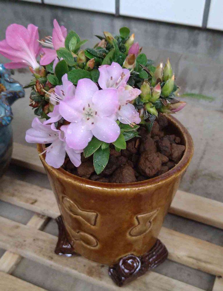 大盆栽まつりで手に入れた深山霧島ツツジ。きれいに咲いた。