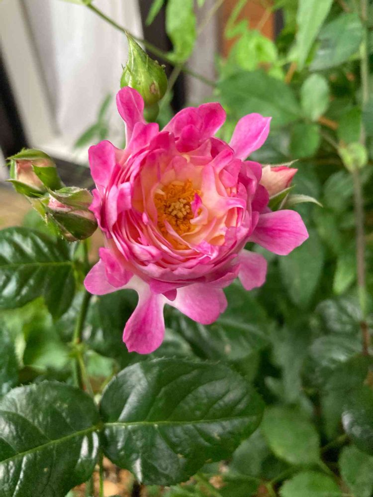 切り花品種のバラさんなんですが、たまたま京成バラ園で1鉢だけ、ミニバラコーナーに置かれてて、お迎えしました🥰