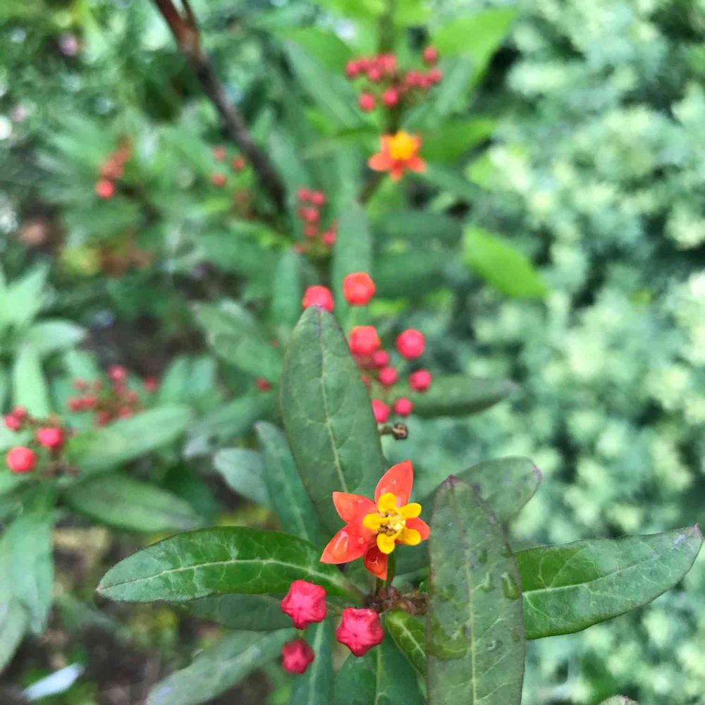 年越し成功したアスクレピアス、今年初開花。種から育てた去年は8月中旬に初開花だったが、本来これくらいの時期から咲く花なんよね。