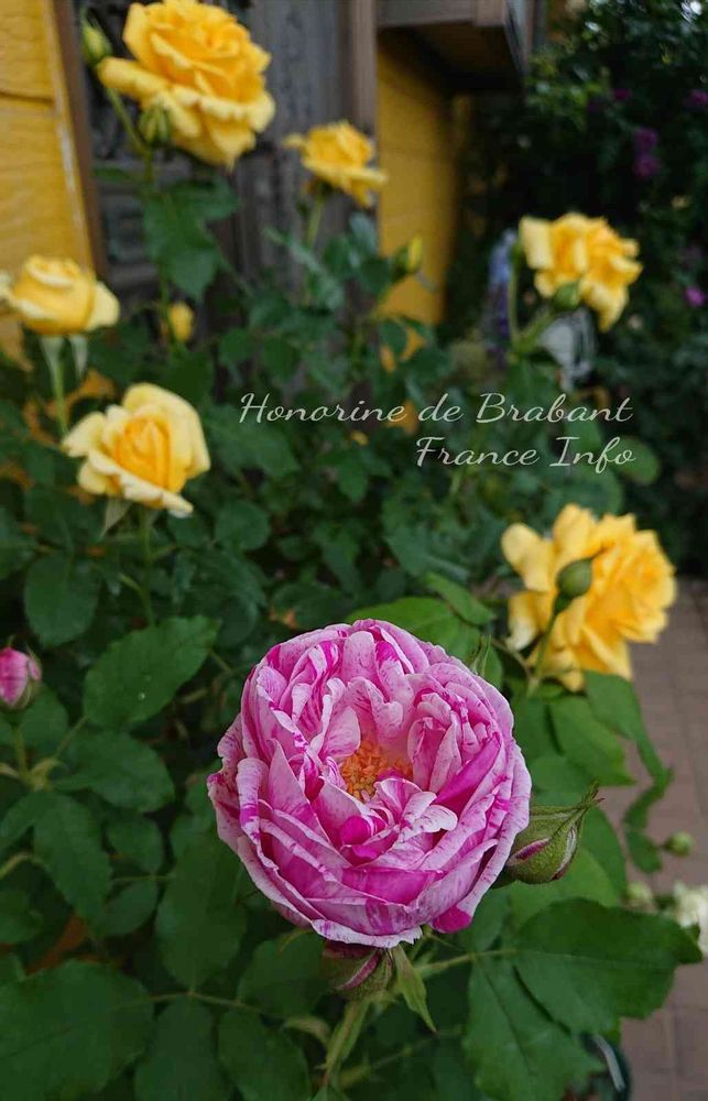玄関前のオノリーヌ ドゥ ブラバン🌹とフランス アンフォ🌹