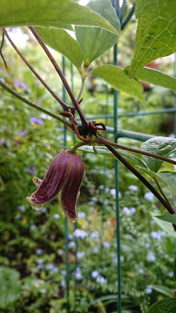 大人っぽい色合いのクレマチスさんですね💜雨をまとい、しっとり綺麗ですね✨😄