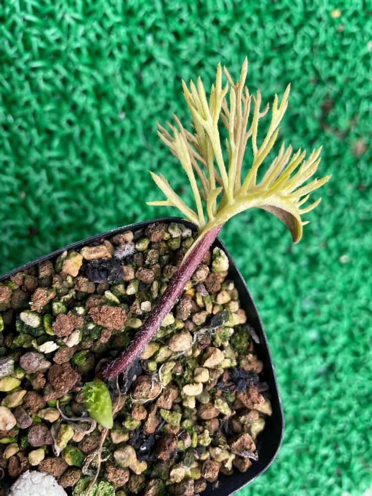 平日多忙で見ないうちにシーズン頭から生えていた葉が力尽きました。休眠するのかと思いきや、株元から新しい芽。まだ頑張るのね…