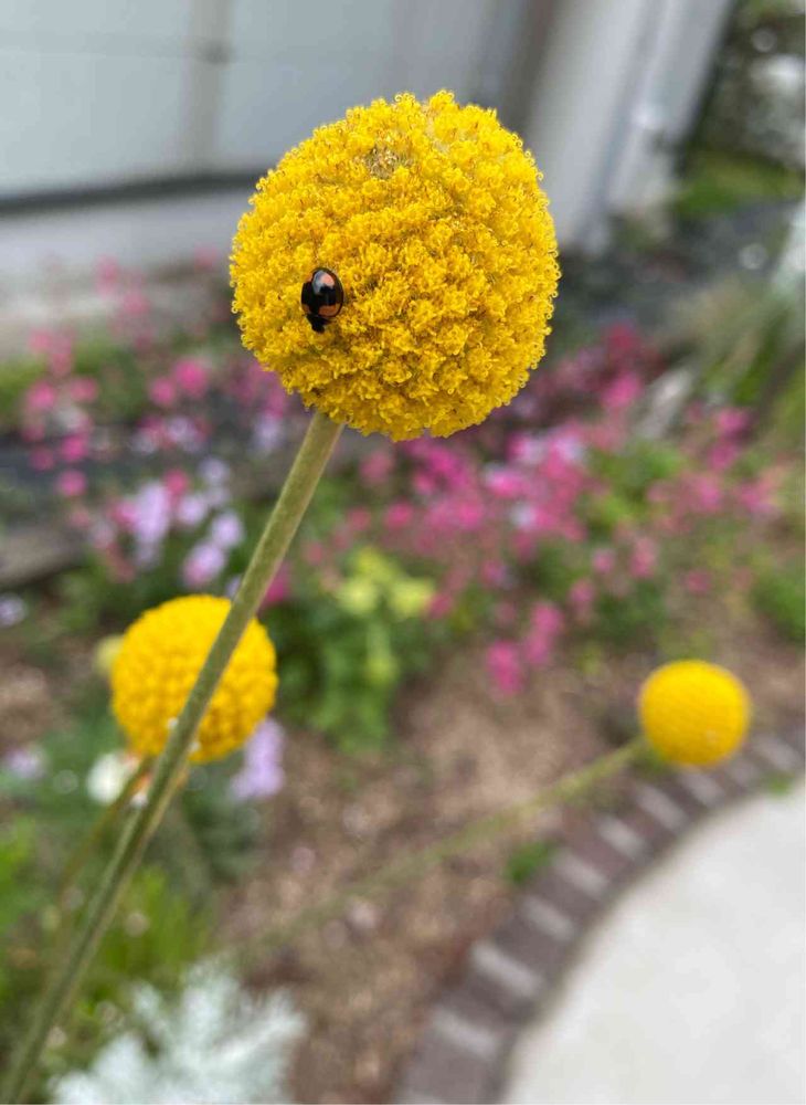 クラスペディア クロボーサとてんとう虫さん (*^^*)5月9日撮影。この後の大雨でお庭がとけてます。。🐞さん避難したかなぁ