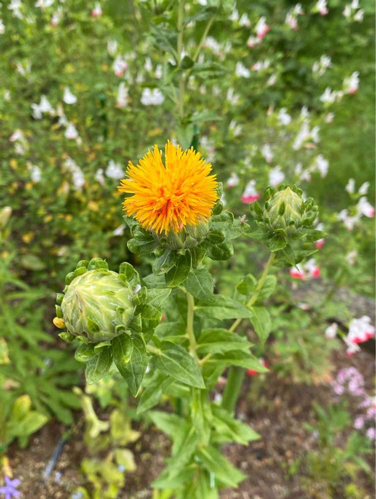 紅花 芯が紅くなるのですね〜 植物油の他、紅い染料にもなるらしい〜