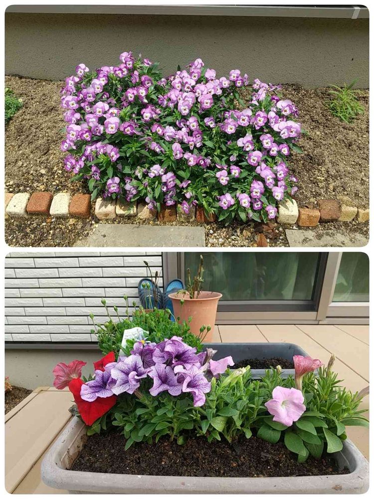 紫のビオラさんペチュニアさん、美しいですねぇ~💖