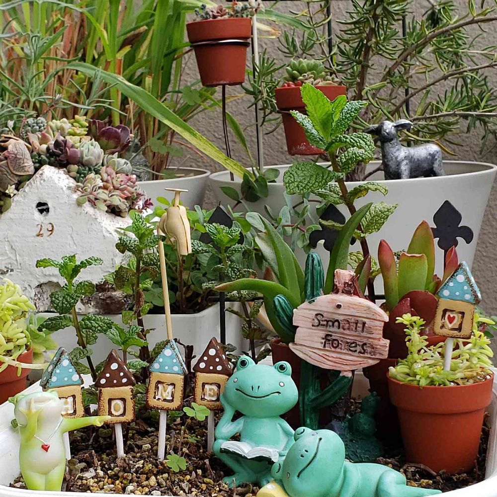 メルカリで可愛いピックを見つけたので、ミントの鉢で遊んでみました。😊🏡💕