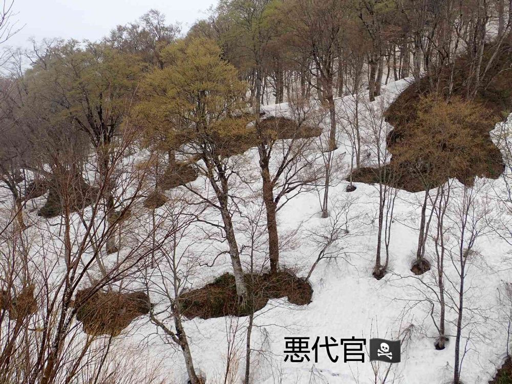 早春のブナの根元は、日中の日差しで温められた幹により、丸く雪が溶けた状態になります🎵