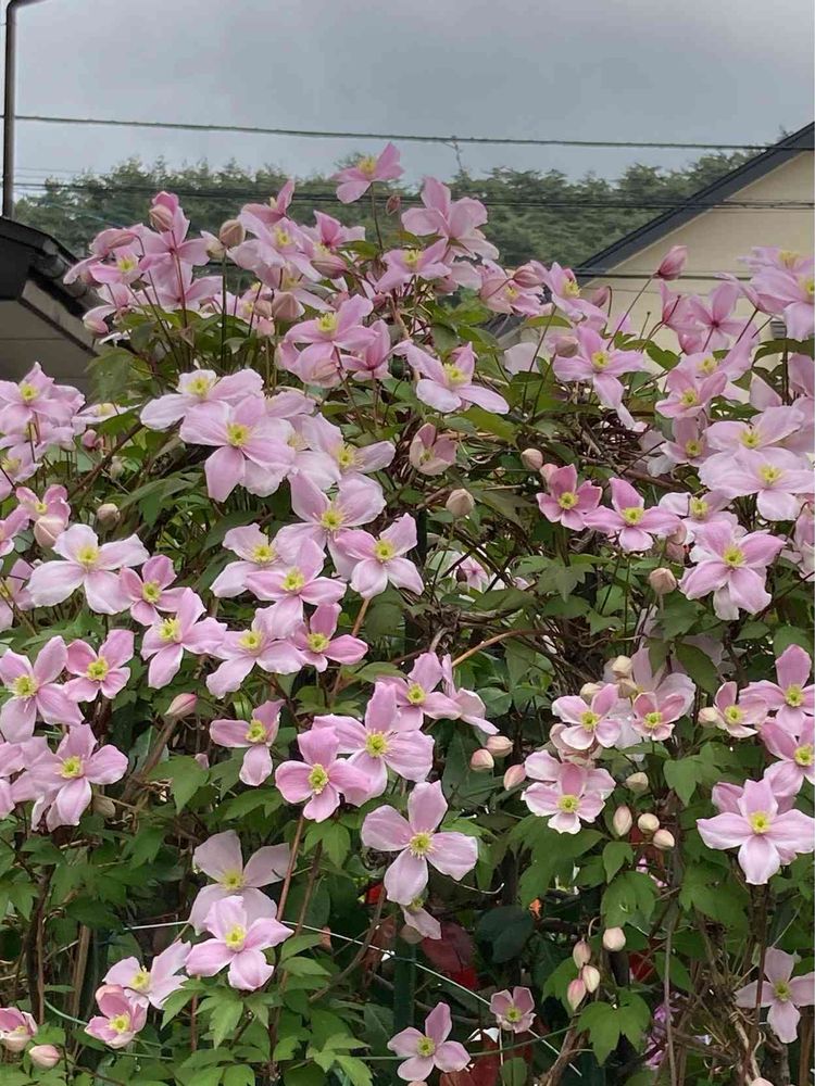 やはり地植えがいいのでしようね。私はクレマチスと薔薇はすべて鉢植えなので、花数は少ないで~す。😖