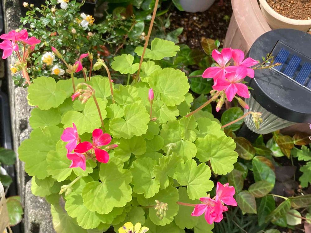 明るい黄緑にショッキングピンクが鮮やかな可愛いゼラニウム