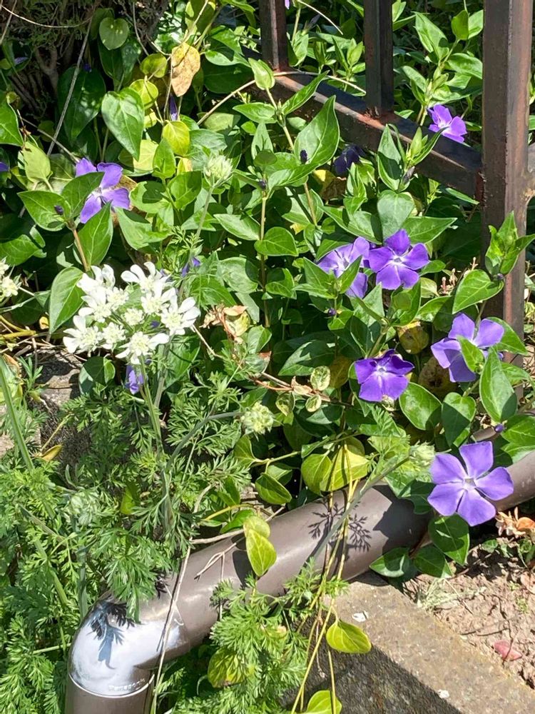 ツルニチニチソウ オルレアと一緒に咲いています。