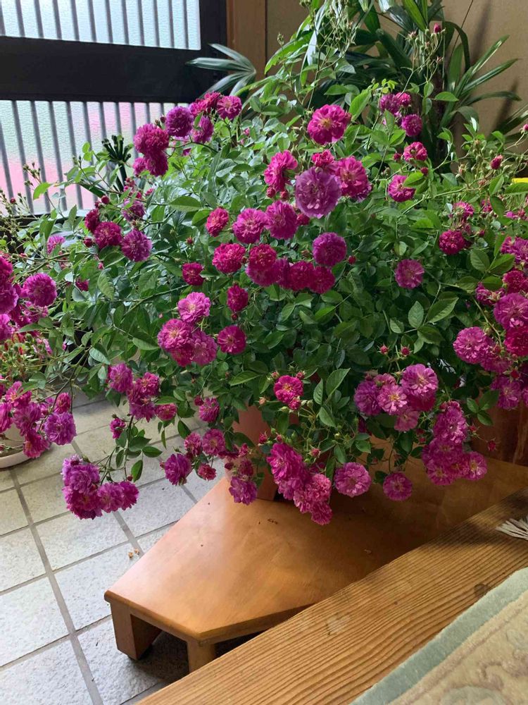 ミニバラだけど、匂いは正統派のバラの香り。朝方には玄関がバラの香りで包まれてる^_^
