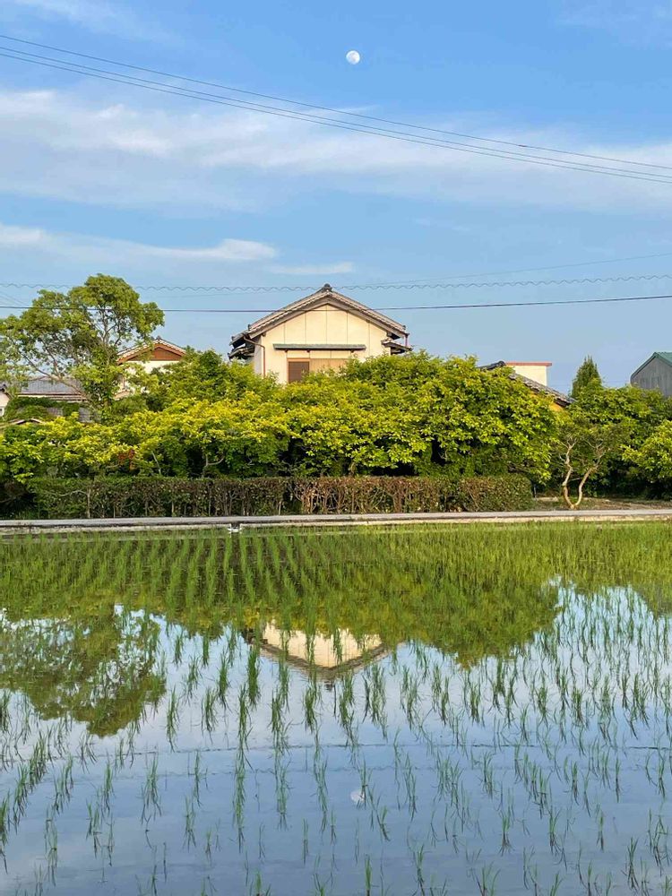 田毎の月と言えば棚田に映る美しいお月様だけだと思ってましたら、平地でも歩いた時、次々と田んぼに映り、ついてくるのもいうそうですね🟡