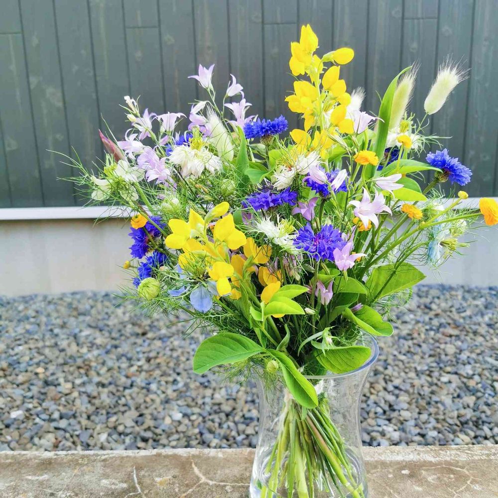 分からないお花もありますが(黄色いマメ科の花のとか)、野性味?がいいなと思って束ねてみました🌿