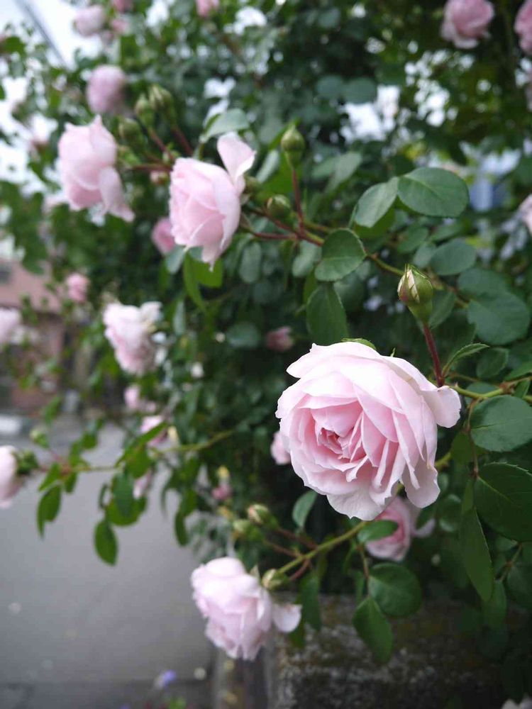 今日のバラ① ソフトピンクのつるバラ、シンデレラ。