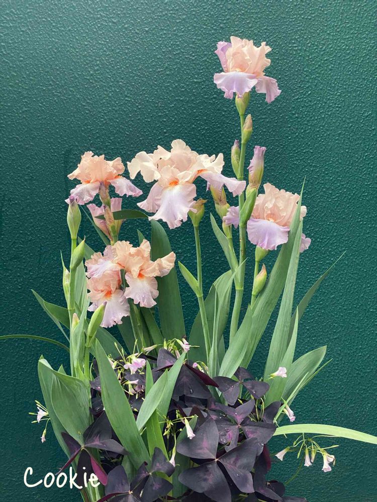 ジャーマンアイリス咲いています😊❣️優しい色合いが好き💓花友さんから頂いて3年目の開花です😃
