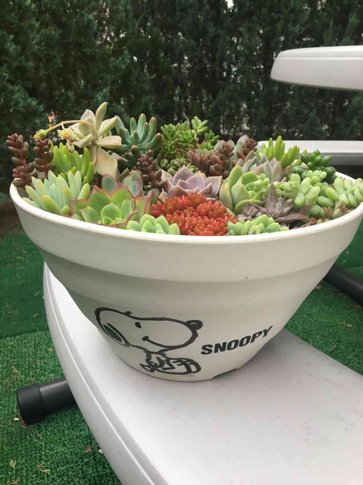 スヌーピーは、鉢に直接マッキーで描いただけですーー