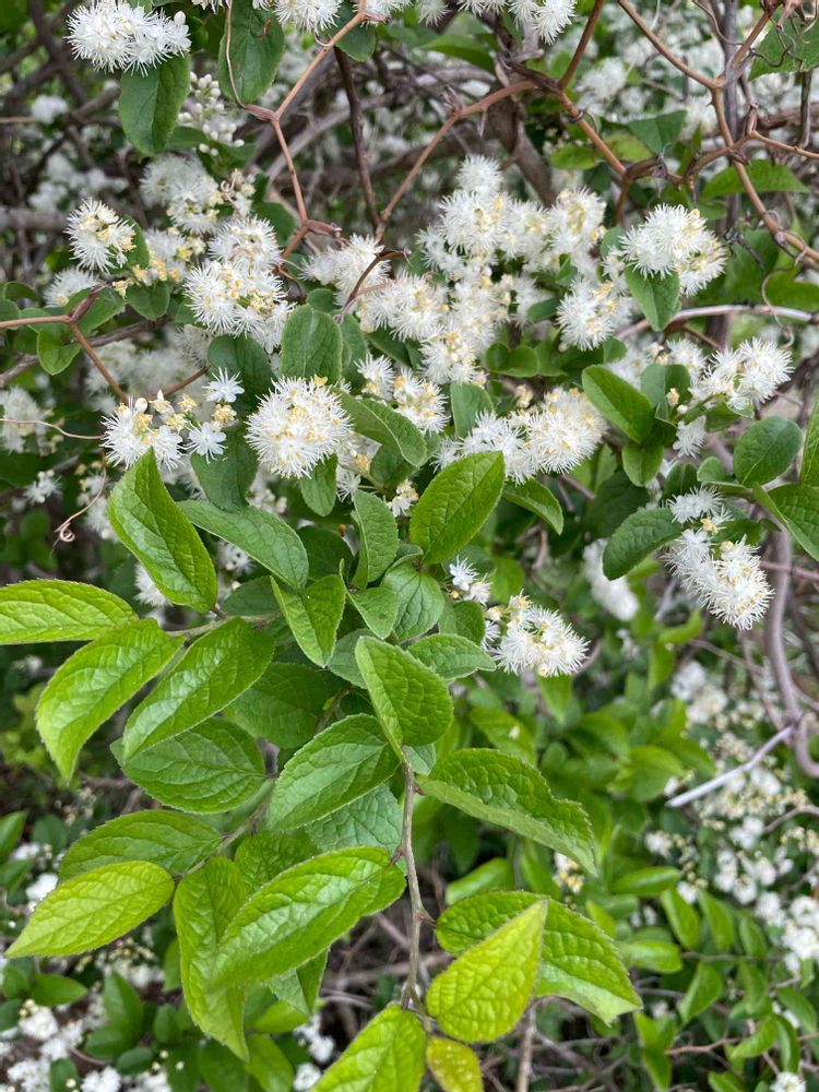 遠くから、綿雪状の白い花の塊が見えました。昨年秋、確か青い実がなっていた木です!