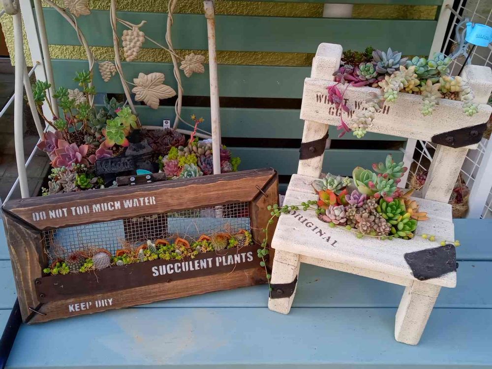 愛用しているチェア鉢も額縁鉢も水﨑さんの木製鉢です♪
