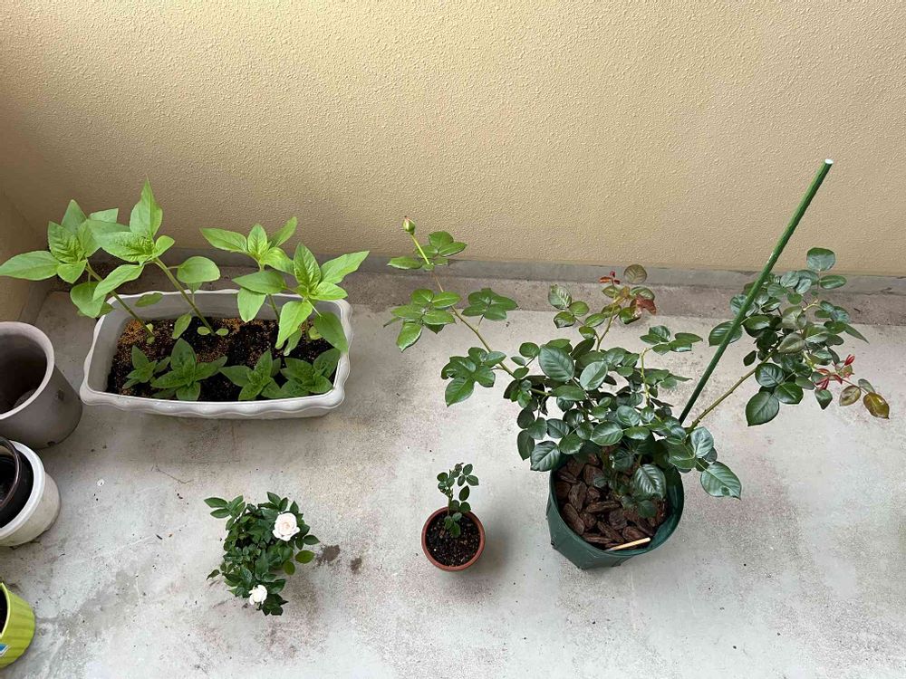 うーん。ミニ薔薇さんぐらいは置けるんだろうけれど、エルさんは鉢が大きいし、ひまわりさんたちもプランターが横長、そしてこれから伸びて行くことを考えると難しいのかなという気がしています。