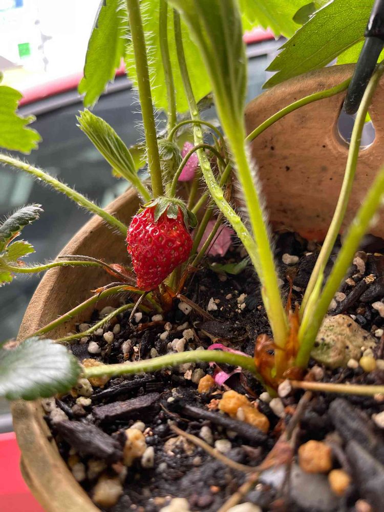 小さないちご🍓なりました🍓😊🌹