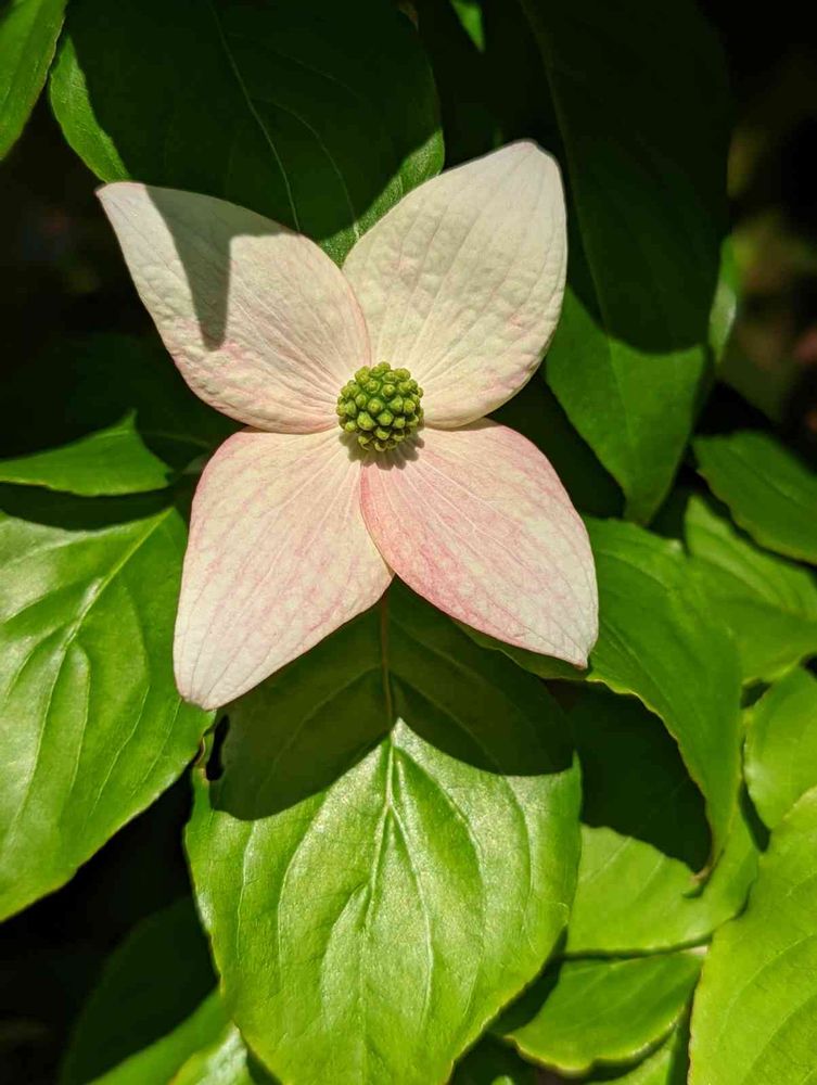 白いヤマボウシを台木にしてピンクを接ぎ木した場合、最初に白が咲いてだんだんピンクになることもあるみたい🙄