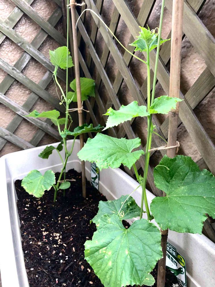 きゅうりもグングン成長し、植え付けの倍くらいの約45センチ程になりました♪