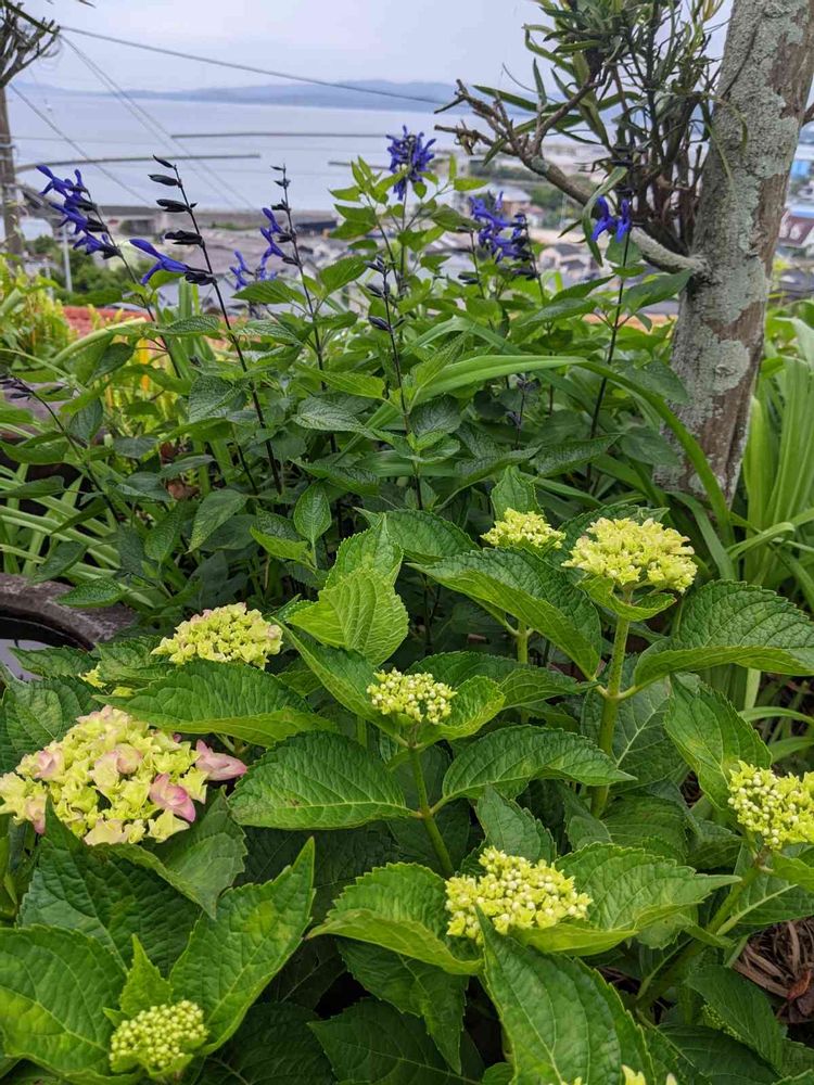 紫陽花とサルビアガラニチカとのコラボ。👍☀️📸😅そろそろ☔に成りそう。😨🌱